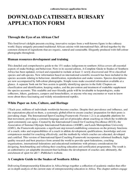Read Online cathsseta bursary application form 2015 Kindle Editon Internet Archive